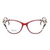 Rojo: Armazón rojo combinado con print negro-blanco y patillas doradas