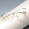 Celeste: Armazón celestre transparente combinado con ocre transparente y patillas doradas