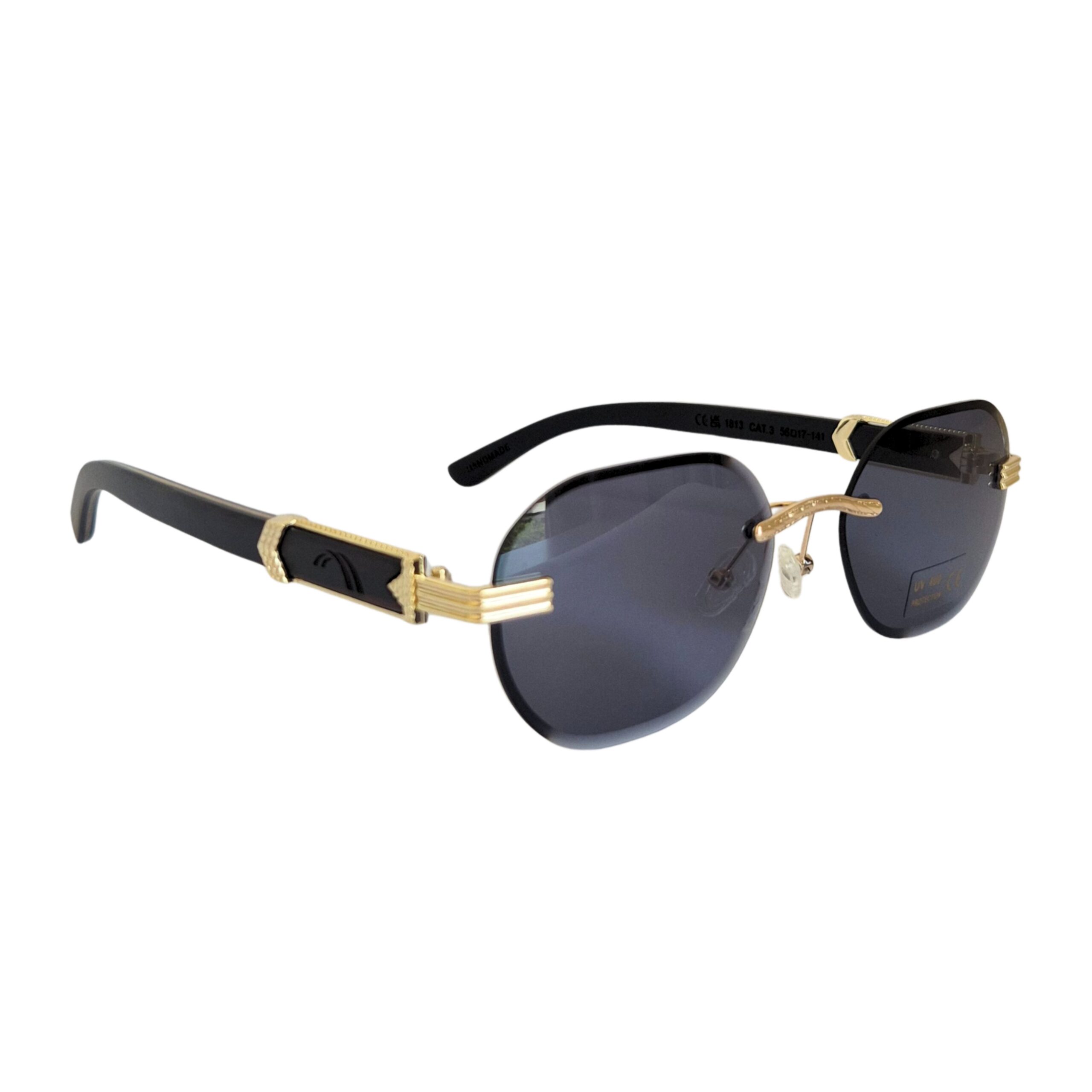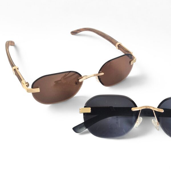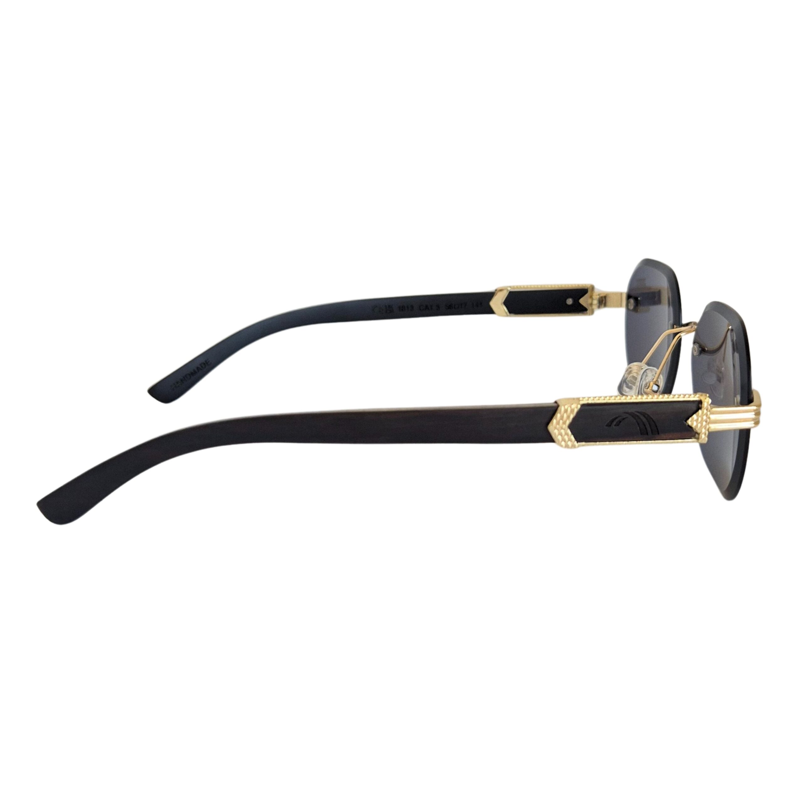 Negro: Cristales tonalizados negro, puente y agarre patillas dorado, patillas de bambú negras