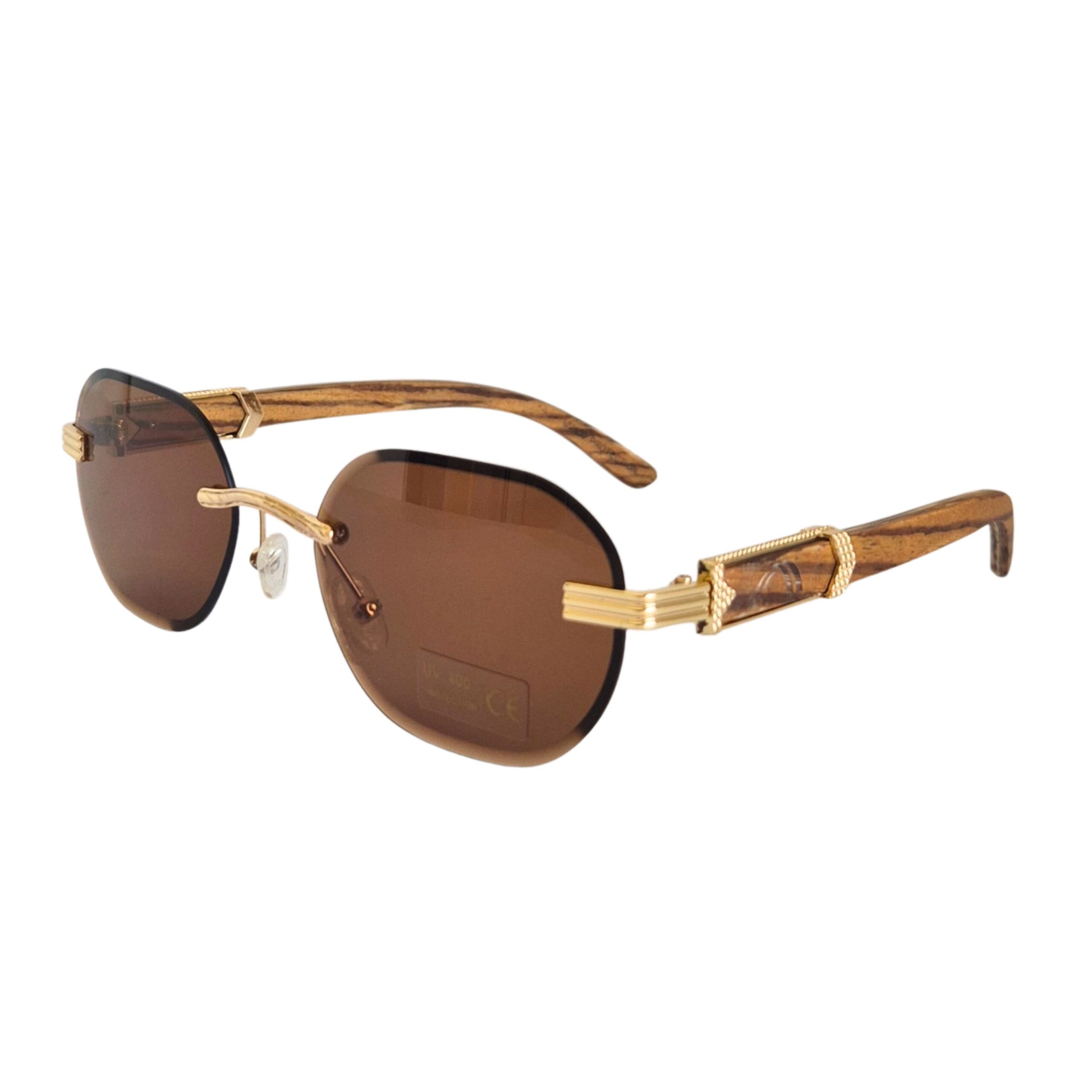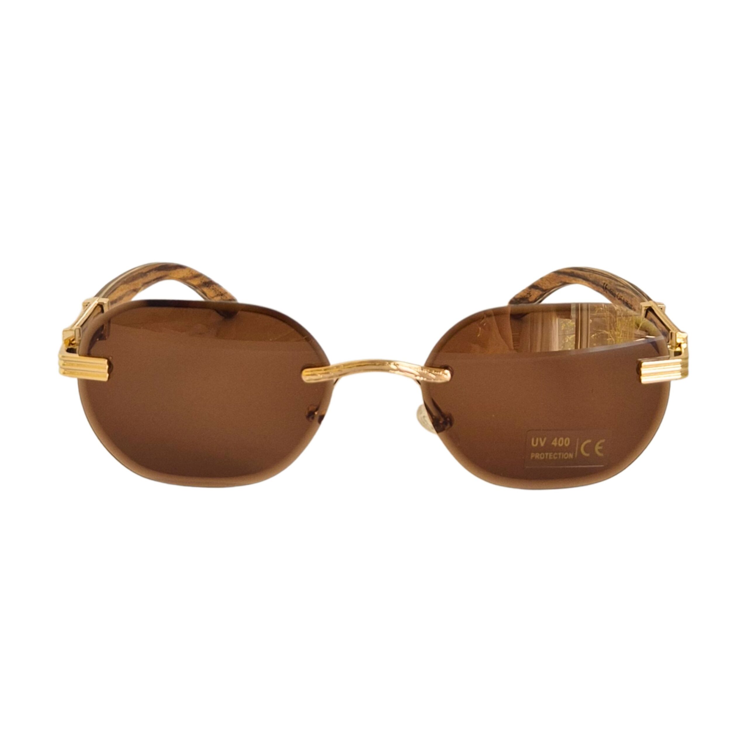 Marrón: Cristales tonalizados marrón, puente y agarre patillas dorado, patillas de bambú marrón