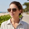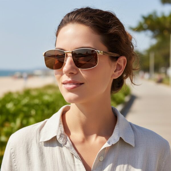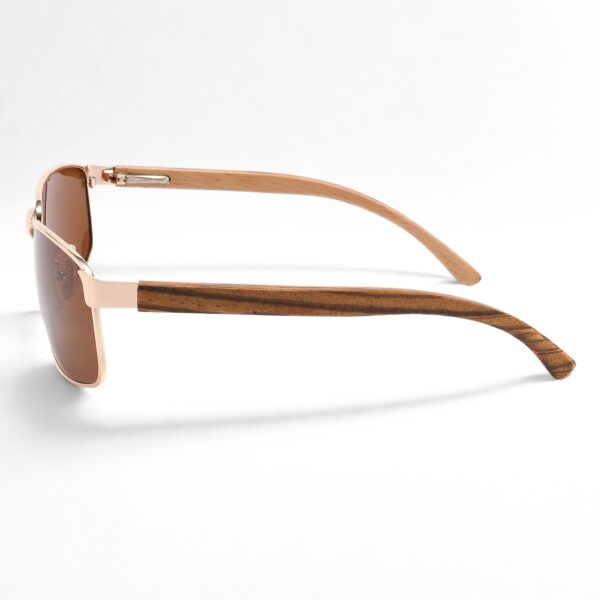 Marrón: Marco metálico dorado con patillas de madera bambú marrón y cristales tonalizados marrones