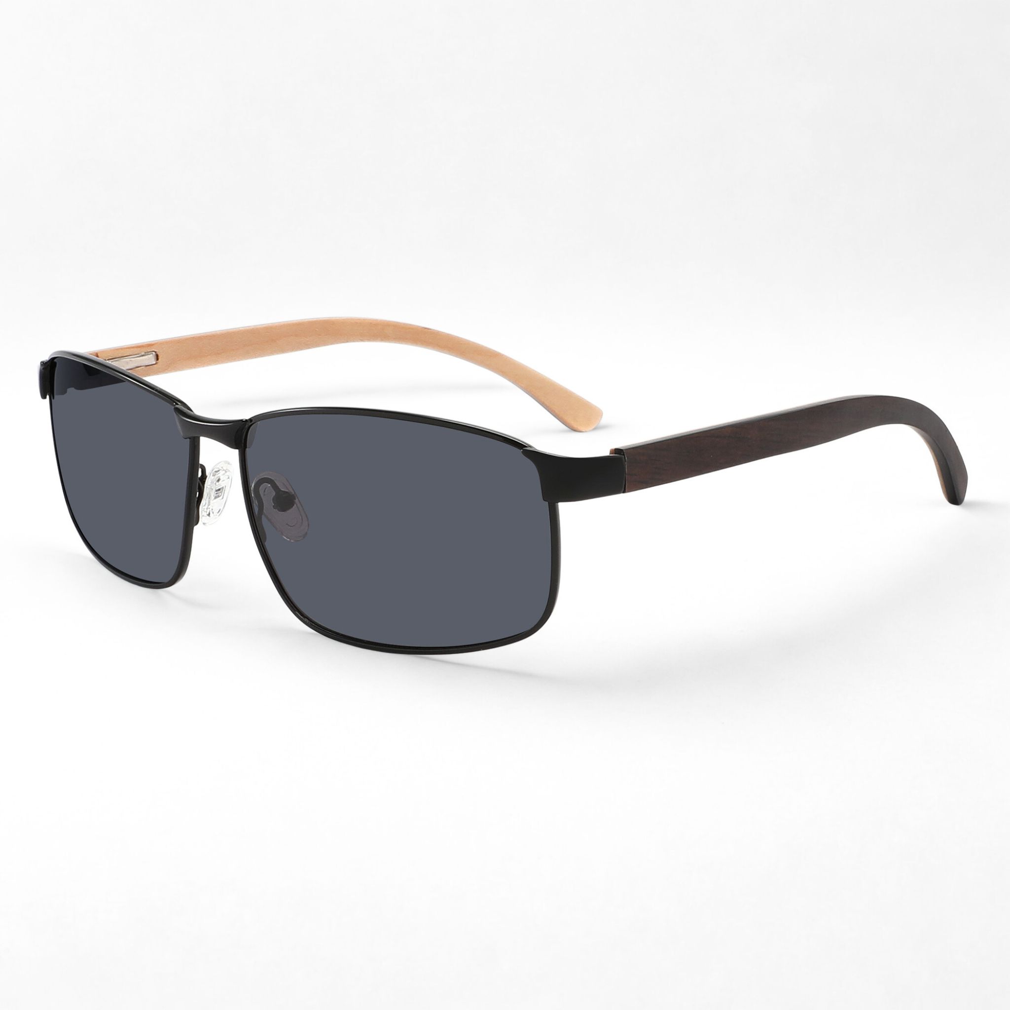 Negro: Marco metálico negro con patillas de madera bambú negras y cristales tonalizados negro