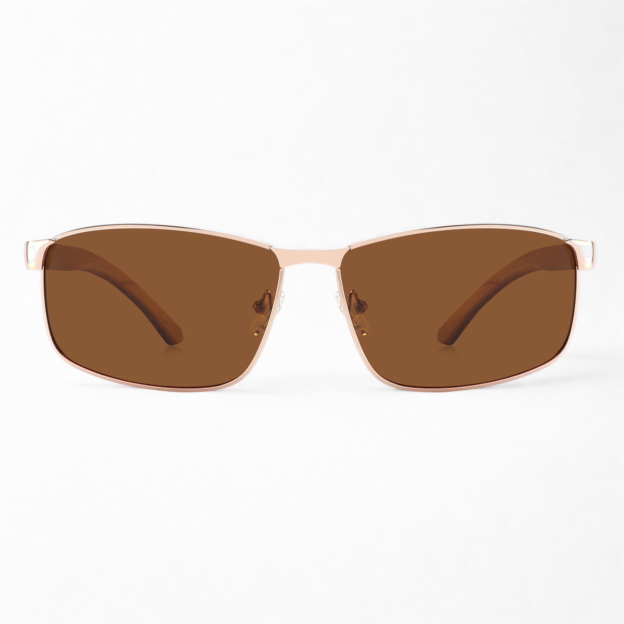 Marrón: Marco metálico dorado con patillas de madera bambú marrón y cristales tonalizados marrones