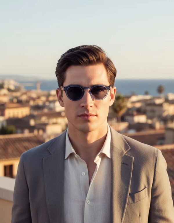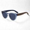Azul: Marco azul semitransparente con patillas bambú marrón y cristales tonalizados negro azulados
