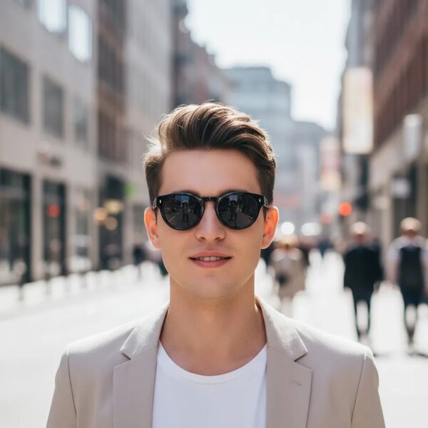 Lentes de sol de diseño redondo última moda, ideales para todo tipo de rostros. Armazón de policarbonato con patillas de bambú y cristales livianos resistentes al impacto de golpes, con ofrecen protección UV 400.