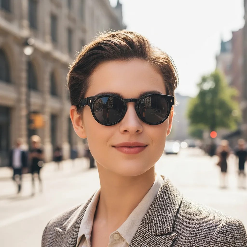 Lentes de sol de diseño redondo última moda, ideales para todo tipo de rostros. Armazón de policarbonato con patillas de bambú y cristales livianos resistentes al impacto de golpes, con ofrecen protección UV 400.