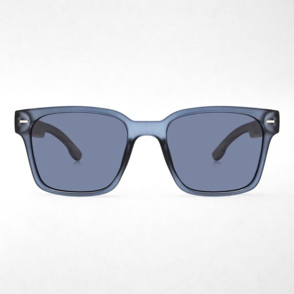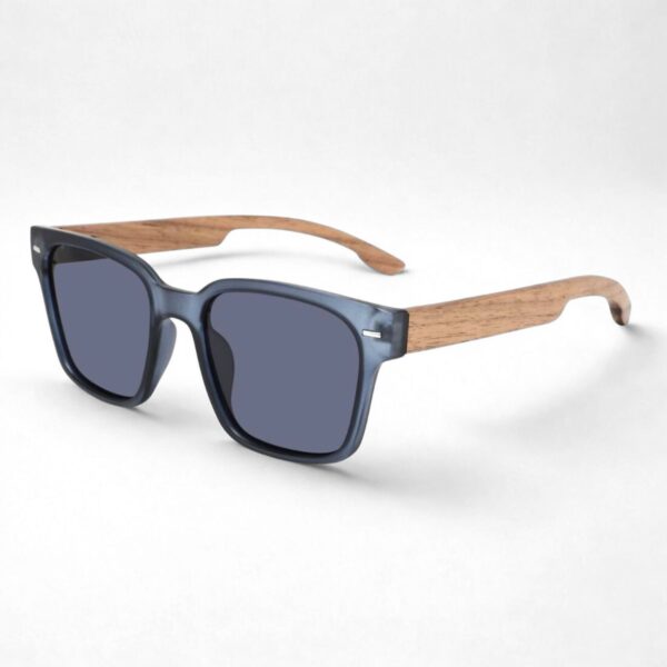 Azul: Marco azul petróleo semitransparente con patillas de madera bambú y cristales tonalizados negro