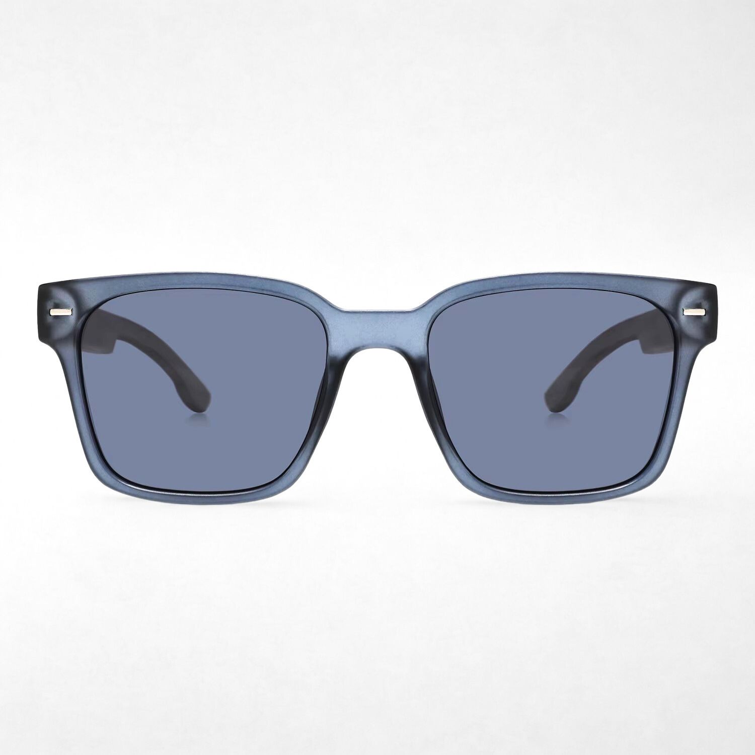 Azul: Marco azul petróleo semitransparente con patillas de madera bambú y cristales tonalizados negro