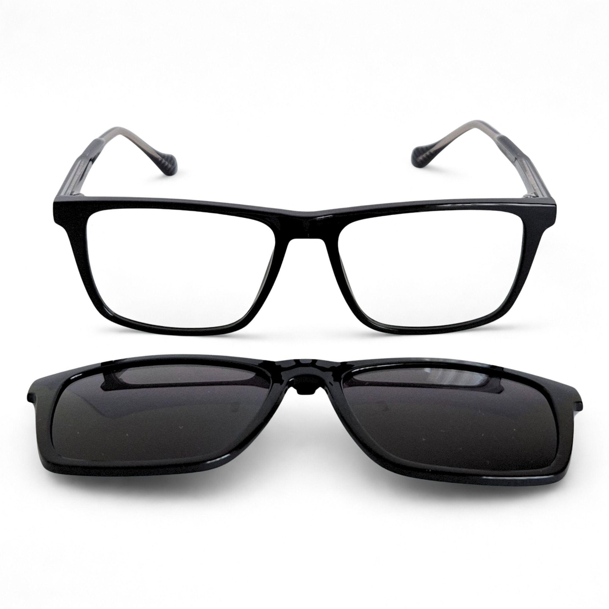 Lentes Clip-On magnético que combinan funcionalidad y estilo. El modelo Simplicidad de diseño rectangular, permite transformar fácilmente tus anteojos recetados en lentes de sol polarizados. Fabricados con armazón TR+CP, son livianos, resistentes y muy cómodos. Sus lentes TAC polarizados con protección UV400 garantizan una visión clara, reducen los reflejos y protegen completamente de los rayos solares.