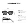 Lentes de sol rectangulares unisex última moda, ideales para todo tipo de rostros. Armazón fabricado en Acetato, patillas propiónico y cristales TAC livianos y polarizados resistentes al impacto de golpes, con protección UV 400.