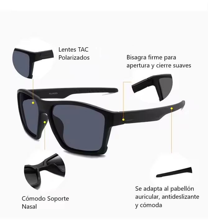 - Lentes deportivos polarizados con protección UV400 y espejados